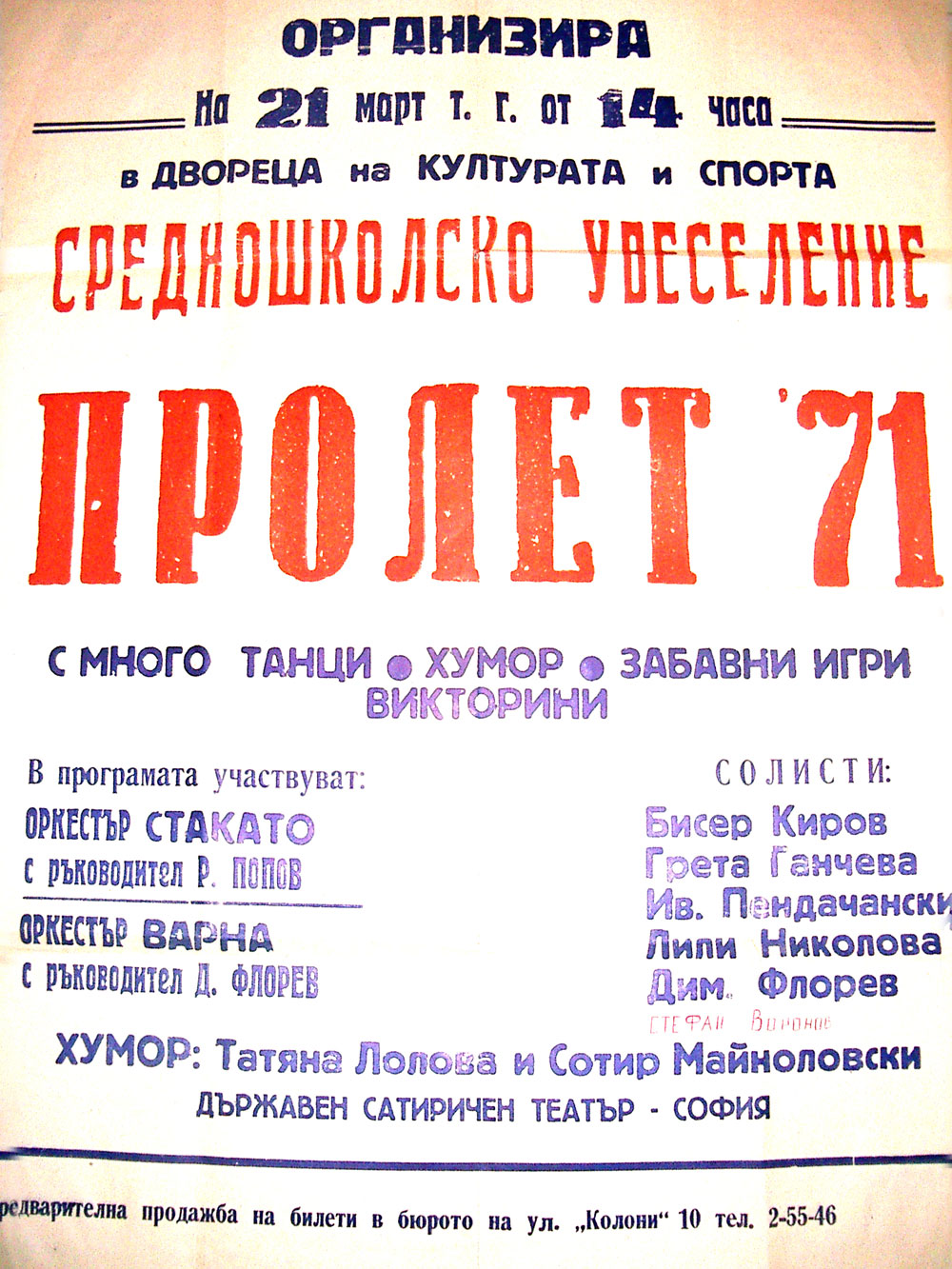 Някои от афишите за концерти с участието на Лили Цветкова, която по онова време все още е носила само моминското си име Николова.
