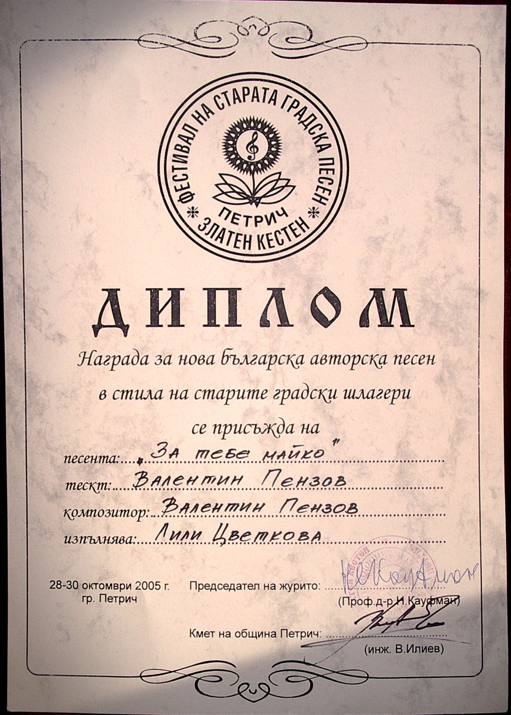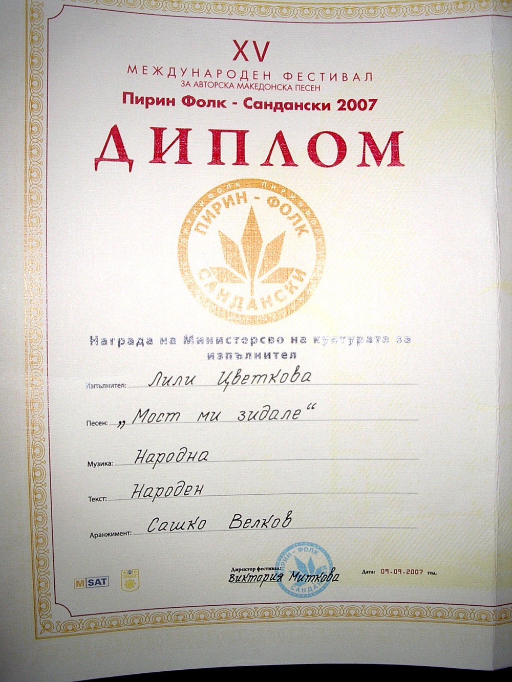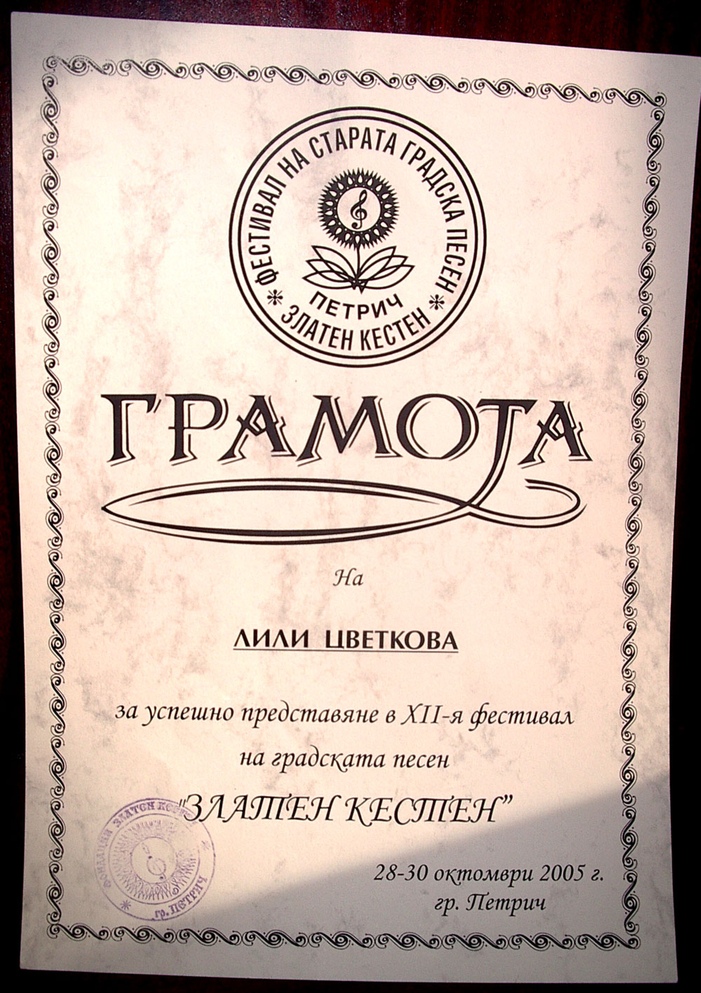 Снимки на някои от наградите, които е получила Лили Цветкова през годините.